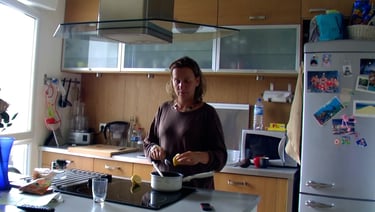 Tatiana s'affaire à la cuisine pour préparer les bons petits plats dont elle détient le secret.