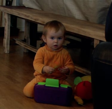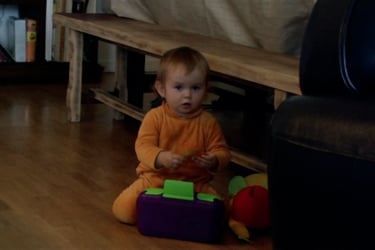 Blanche, encore bébé, découvre les plaisirs des jeux d'emboîtement