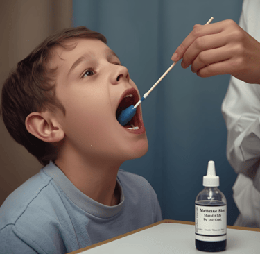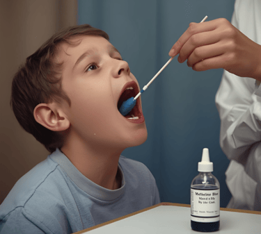 Le temps n'était pas non plus au beau fixe. L'air était humide, souvent il pleuvait, parfois une nappe de brouillard s'étalait sur tout le village. Je pense que nous n'avions pas très chaud. Aussi je ramassai rapidement un grand mal de gorge qui m'empêchait d'avaler même ma salive. Pour éviter la douleur, j'accompagnais ma déglutition d'un mouvement du cou et de la tête qui semblait la facilité. Pour me soigner on me conduisit auprès d'e l'infirmière qui officiait dans la maison de Fouillan. Elle détecta une forte angine avec un fort gonflement de mes amygdales. Pour me soigner, elle pris une espèce de grand bâtonnet terminé par une houppette de coton hydrophile. Elle le trempa dans un flacon rempli d'un liquide bleu foncé Elle me demanda d'ouvrir grand ma bouche Elle badigeonna mes grosses amygdales avec ce liquide. Cela me donnait des hauts le cœur. Elle me dit que le liquide était du bleu de méthylène, la panacée universelle à l'époque pour soigner les angines. Elle me précisa que mon pipi allait être tout vert (jaune et bleu). Ce qui se produisit rapidement.
