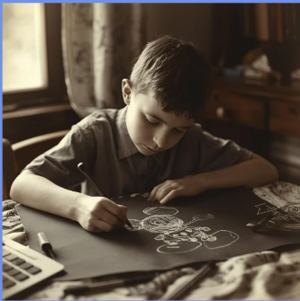 Je me mis à dessiner, mais uniquement des personnages du journal mickey. Je recopiait fidèlement les couvertures de ce magazine sur du papier canson noir avec un crayon à papier Je peignait ensuite mon dessin avec de la gouache. Mes reproductions étaient fidèles et je me faisait un point d'honneur de ne pas les décalquer.