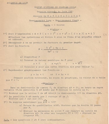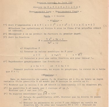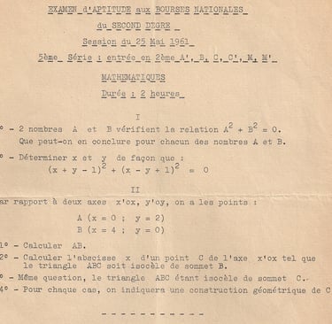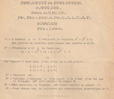 Mathématiques : Je m'épris de cette matière. Les problèmes d'algèbre et de géométrie me séduisaient. En plus des exercices donnés à faire à la maison, j'essayais d'en résoudre d'autres que je trouvais dans le livre. Parfois, je ne trouvais pas la solution, mais je persistais et restais une ou deux heures à chercher en veillée écrivant, raturant, sur un cahier posé à côté de mon livre sur la table de la cuisine. Il m'arrivait que, fatigué, j'allais me coucher et que le lendemain matin à mon réveil, la solution s'offrait à moi avec une claire évidence. Après que le problème a été résolu, au prix de nombreux efforts, j'étais satisfait, content, heureux. Cela me motivait pour recommencer avec des exercices de plus en plus difficiles.