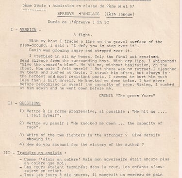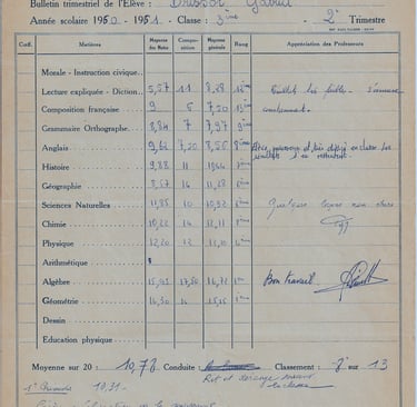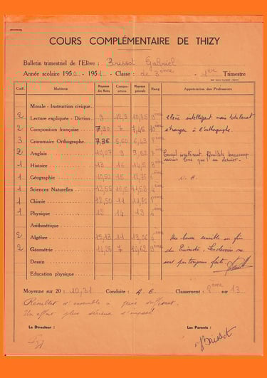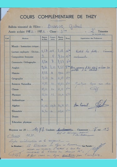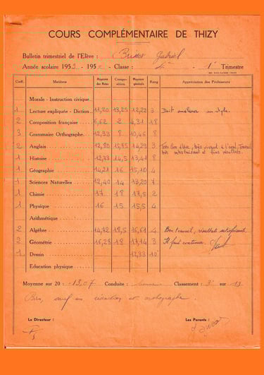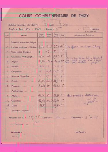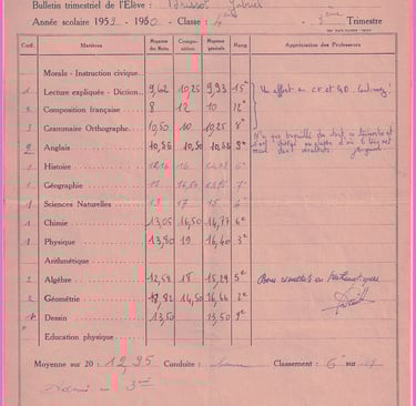 Ce fut une année scolaire de progrès où je devenais de plus en plus conscient et où j'appris beaucoup. Par contre, en français je stagnais voire même je régressais sauf en grammaire.