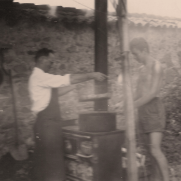 La cuisine de mon père était une cuisine de plein air improvisée avec le peu de moyens existant à l'époque :